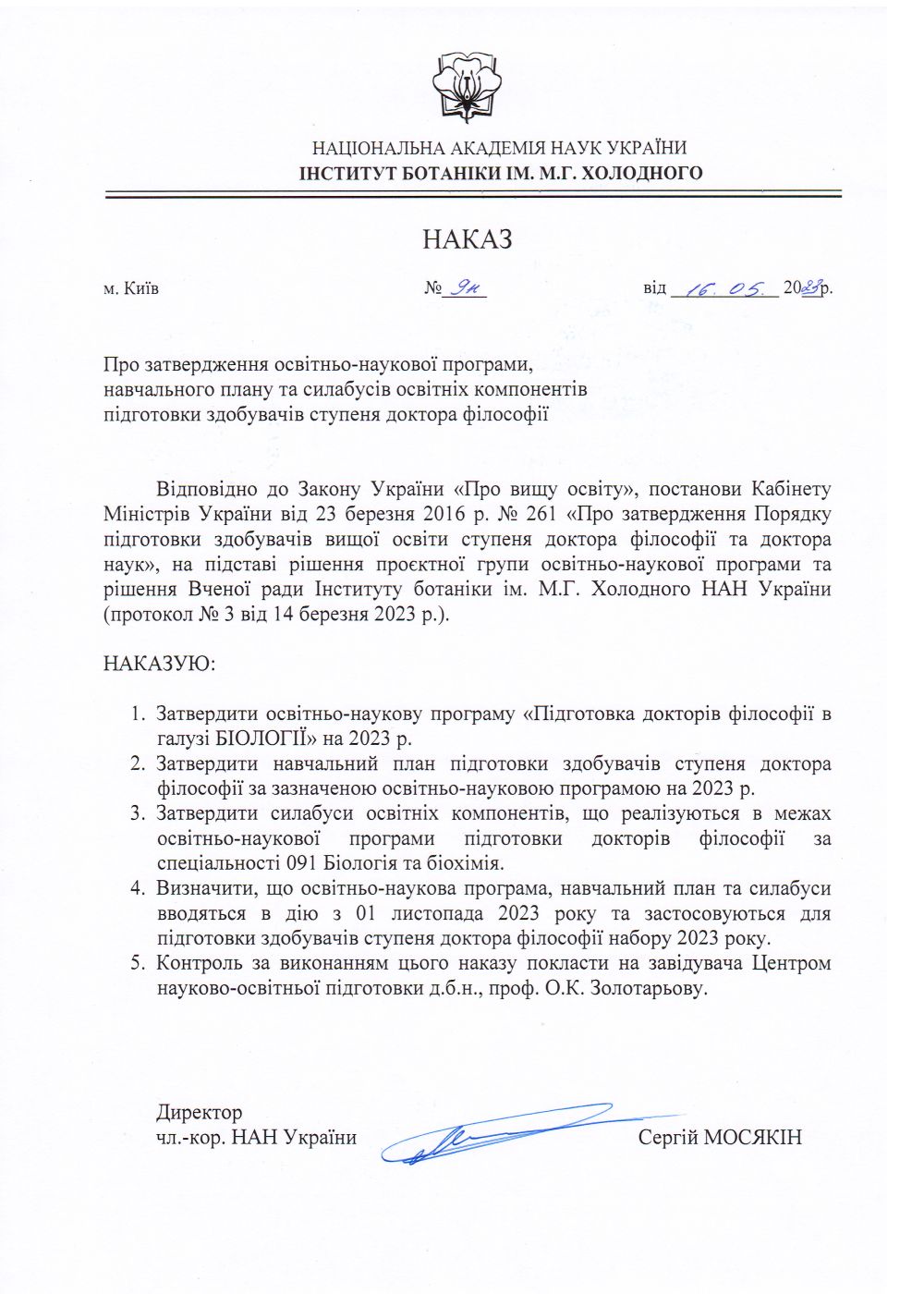 Освітньо-наукова програма “Підготовка докторів філософії в галузі БІОЛОГІЇ” (проєкт)