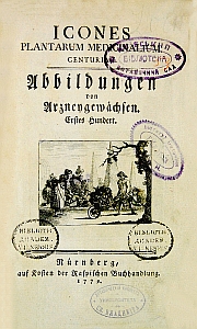 Zorn, Joannes. Icones plantarum medicinalium; centuria I–V. = Abbildungen von Arzneygewächsen; I–V Hundert. — Nürnberg: Auf Kosten der Raspischen Buchhandlung, 1779–1784. — [6], 336, [32] p. Сторінки в гравійованих рамках; ініціали. Бібліогр.: Brunet, 5, col. 1540